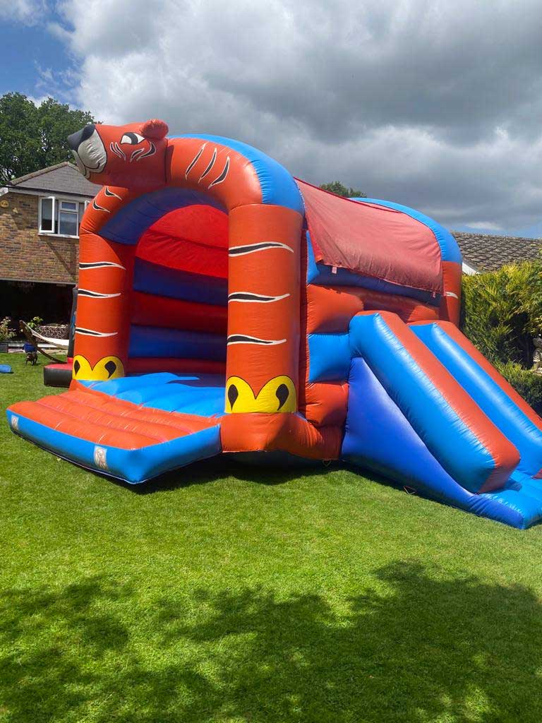 We have a range of themed castles for kids parties from just £80 for the day including a Princess Castle with slides, a Super Hero castle and a Giant Tiger castle with slide.